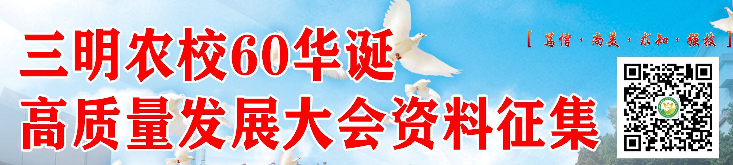 三明市农业学校六十周年华诞高质量发展大会资料征集启事(第一号)尊敬的历届校友、教职员工及社会各界人士:春华秋实六十载,桃李芬芳满天下。值此我校即将迎来建校六十周...…