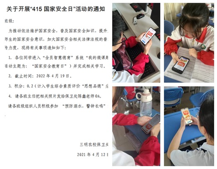 学校通过线上安全教育平台资源、星空(中国)全员智慧德育平台,以专题活动、微课题等方式,向全体师生讲解了全民国家安全教育日的由来,什么是总体国家安全观,与国家安全相关的法律,以及青少年如何维护国家安全等。