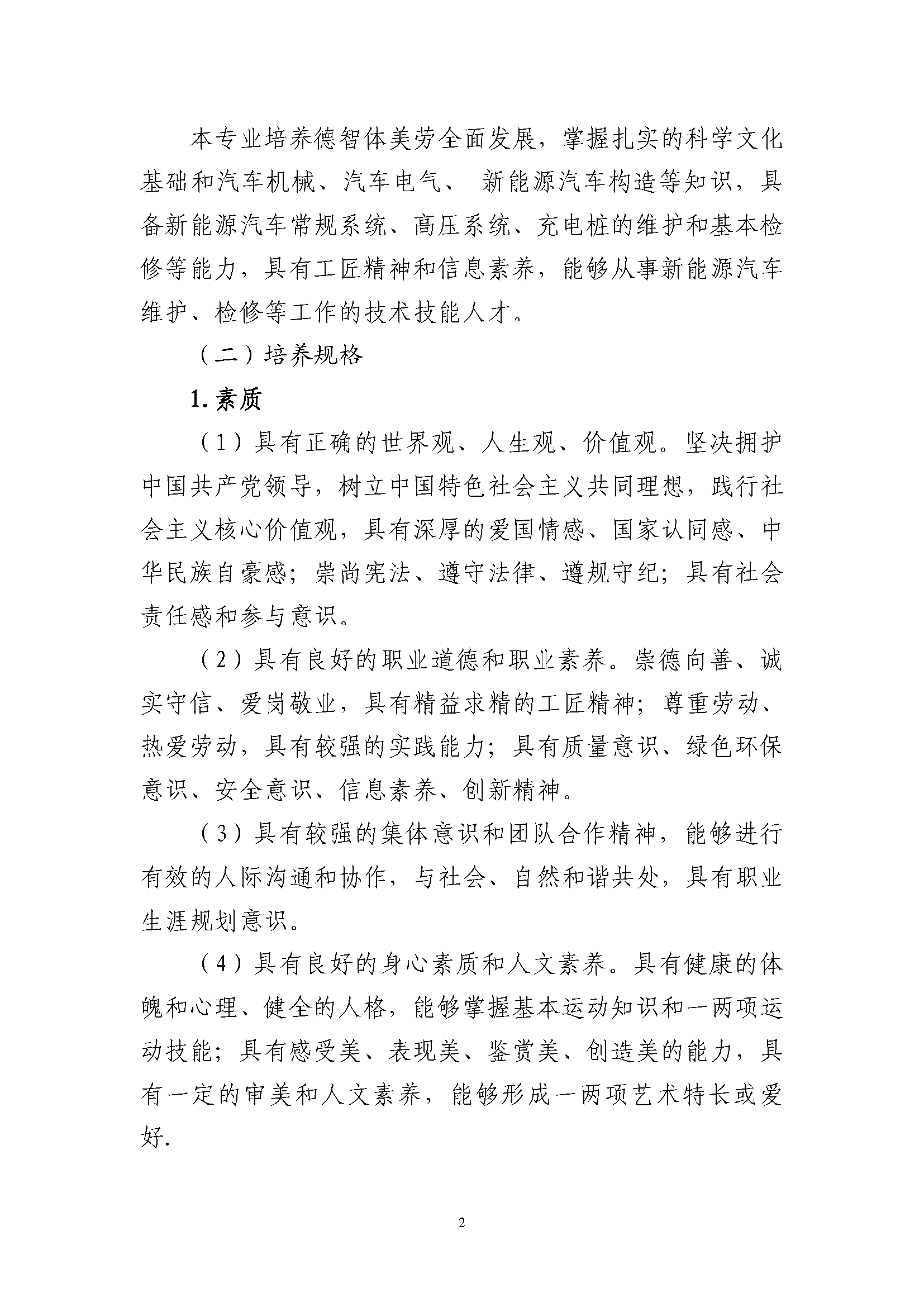 三明市农业学校新能源汽车运用与维修专业人才培养方案(2023)
