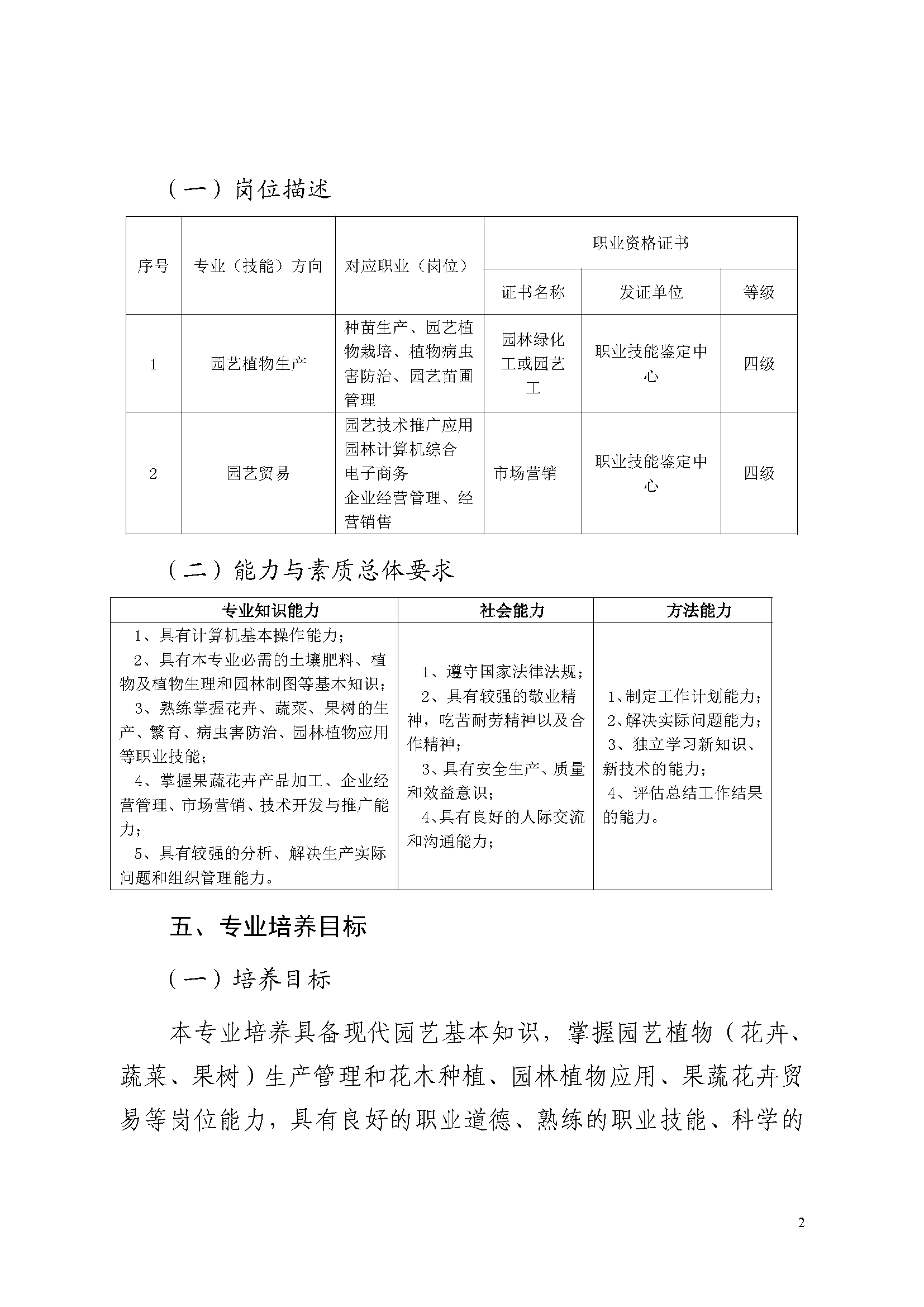 三明市农业学校园艺技术专业人才培养方案(2023)
