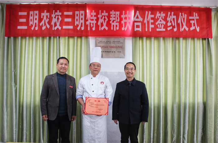 近年来,三明市农业学校充分发挥职业教育专业和师资优势,在专业建设、师资培养等方面与三明市特殊教育学校开展了深度合作。这次双方依托“林添雄福建省技能大师工作室”这个平台,在三明特殊学校成立“星空网页版 ‘林添雄省级技能大师工作室’三明市特殊教育学校工作站”,将进一步发挥双方办学优势,促进两校专业共建、师资共培、资源共享、学生共育,有力推动“职业教育与特殊教育”的创新融合发展,有效提升三明特校学生沙县小吃制作技艺,促进特殊学生就业创业。