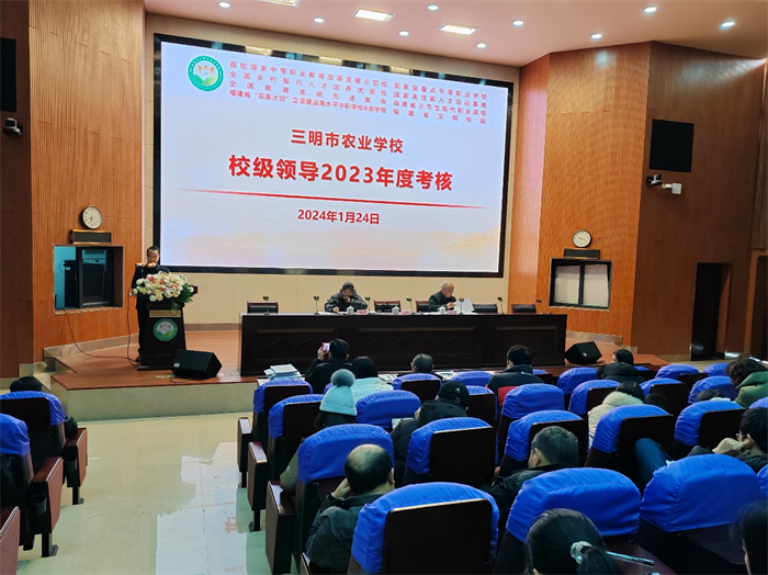 1月24日上午,星空(中国)在学术报告厅召开2023年度校级领导年度考核工作会。受中共三明市委组织部和中共三明市委教育工委委托,三明市教育局四级调研员何正润、市教育局初教科干部李晓燕莅临学校,开展2023年度学校领导班子年度考核工作。学校130余位教职工与会。