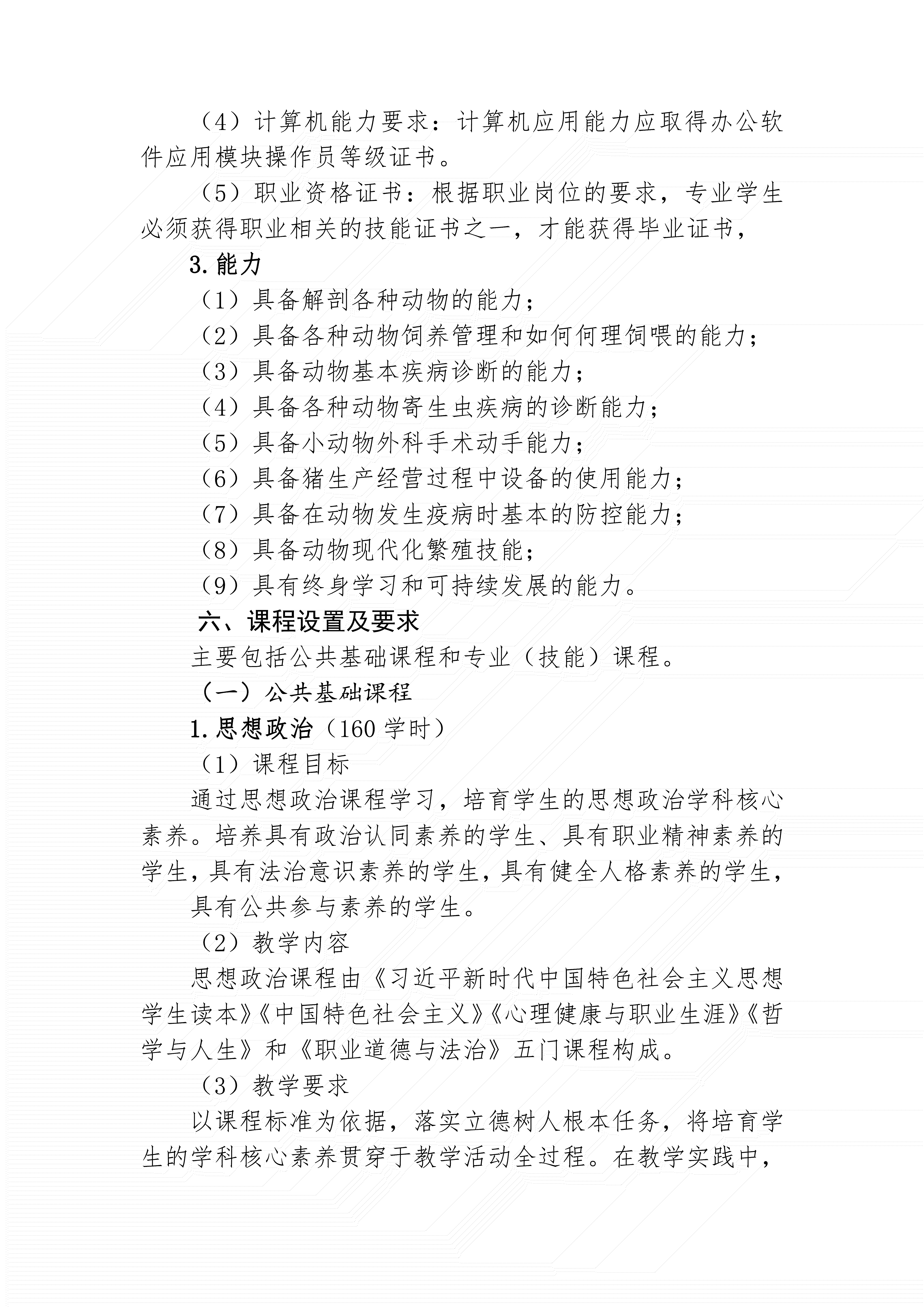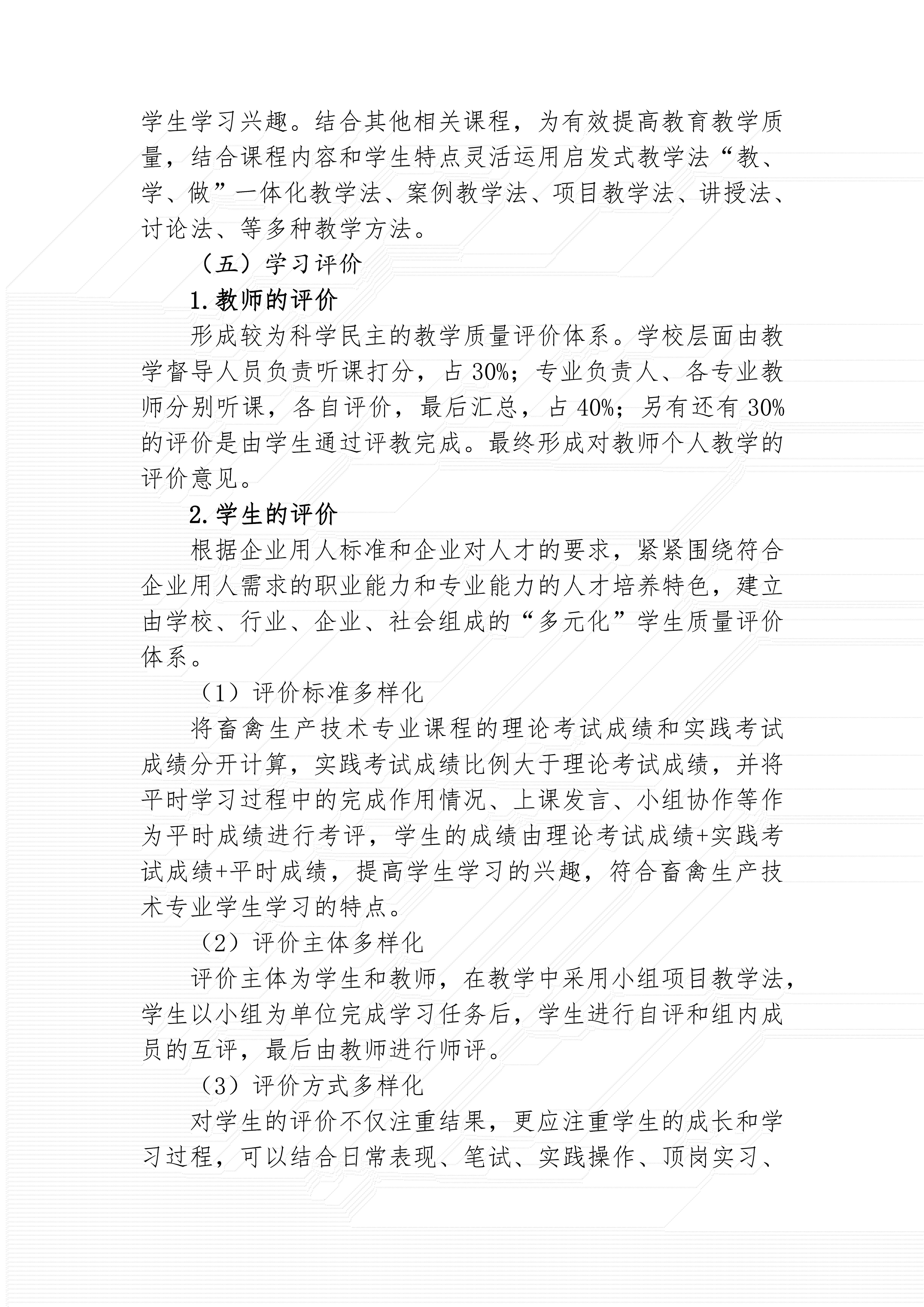 三明市农业学校畜禽生产技术人才培养方案(2024)