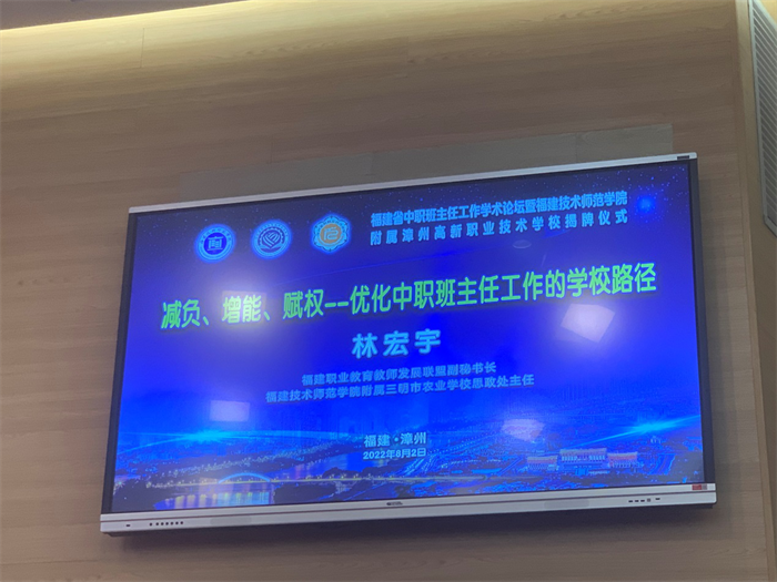 8月2日,福建省职业教育教师发展联盟在福建技术师范学院附属漳州高新职业技术学校召开,首次聚焦中职学校班主任工作的痛点难点问题展开深入研讨,为加强和改进中职思想政治教育贡献集体智慧、提供福建方案。我校党委书记、校长罗世钦,思政处主任林宏宇受邀参加。