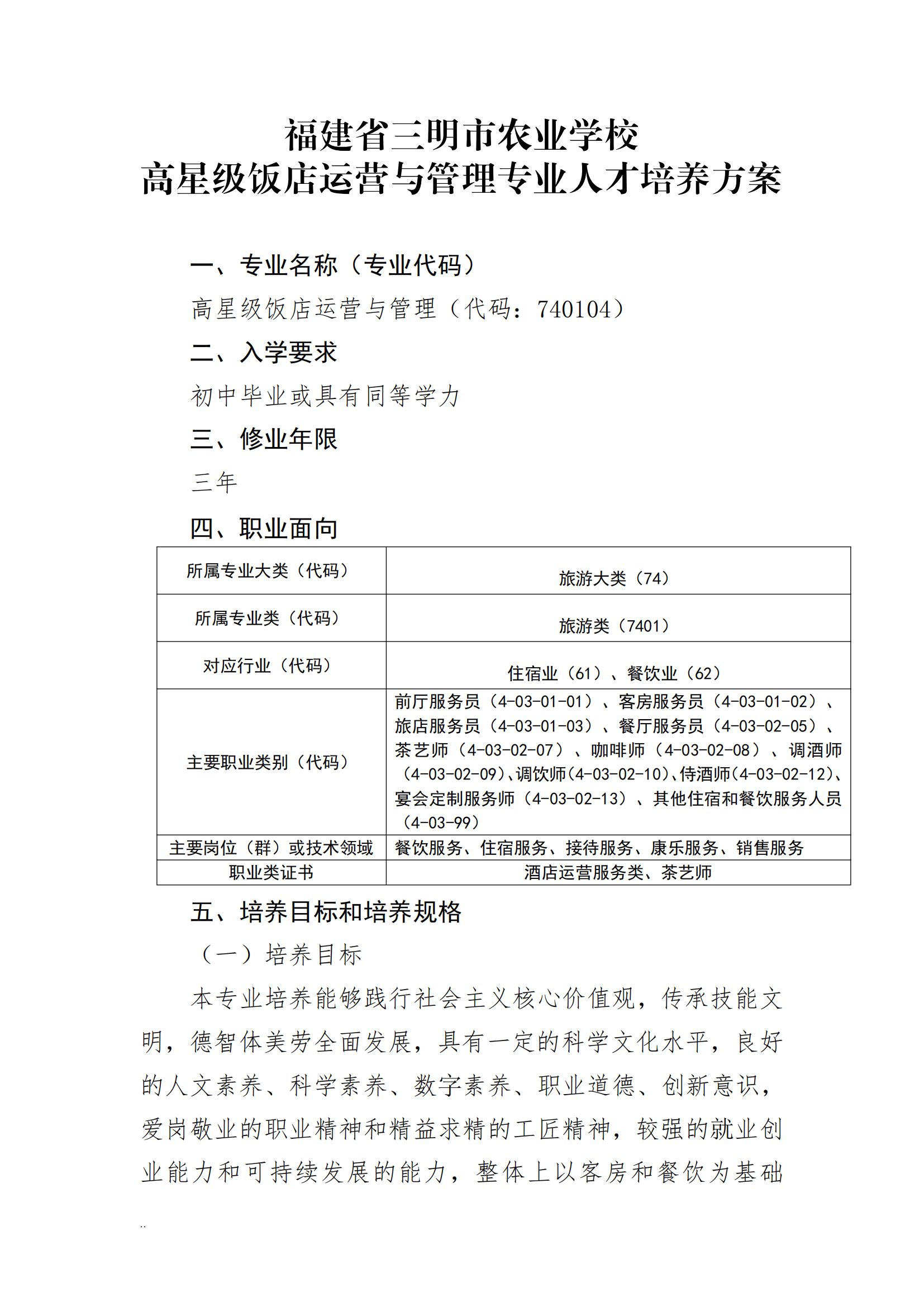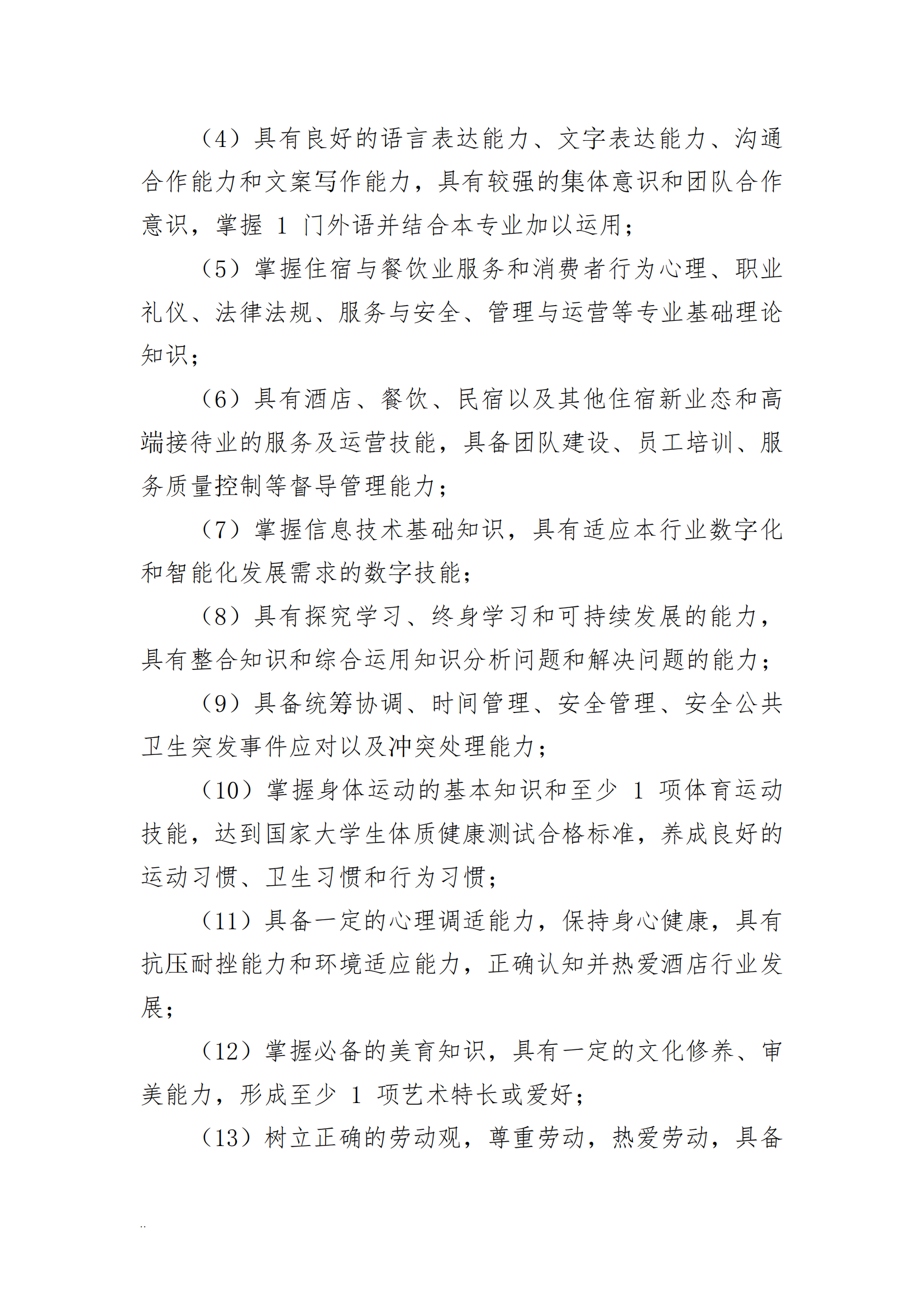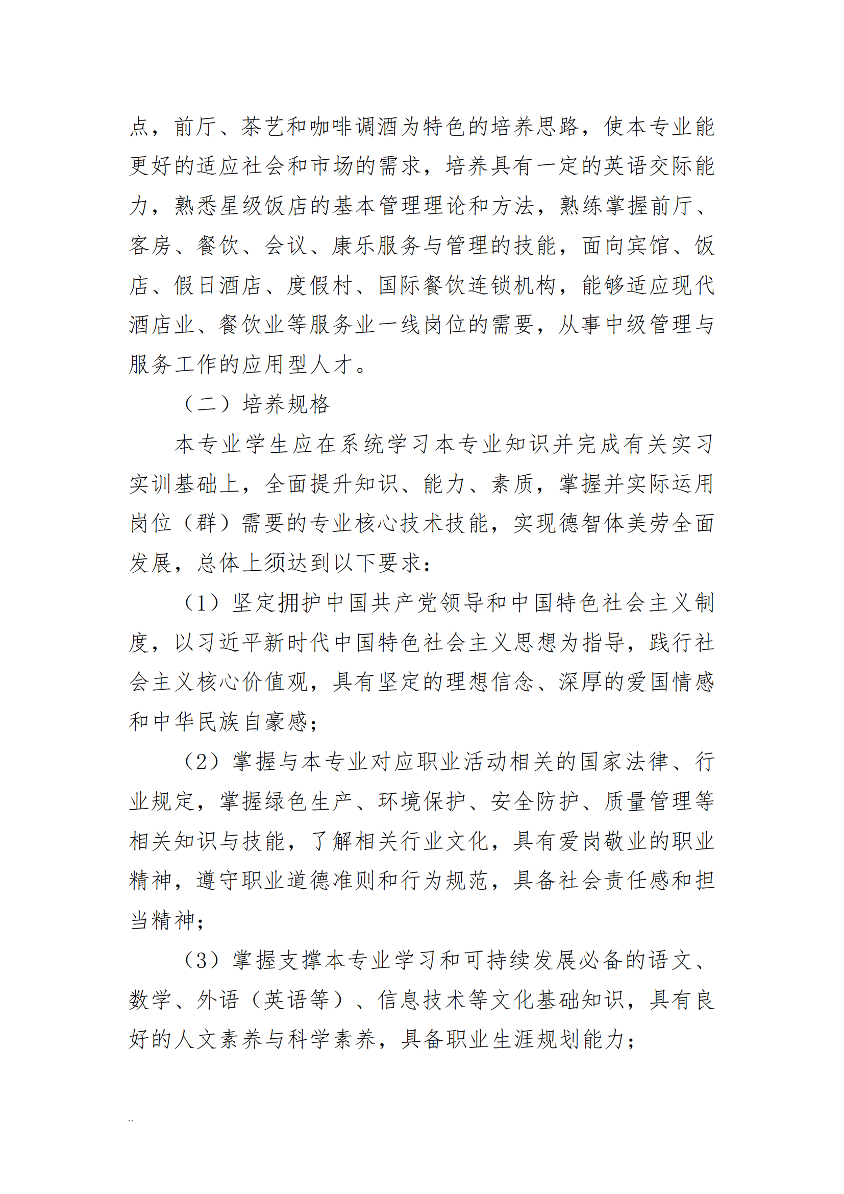 星空网页版高星级饭店运营与管理专业人才培养方案