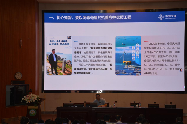 讲座伊始,龚权华以“崇明守长江、三明护山林”的生态共鸣切入,阐释两地作为“绿水青山就是金山银山”实践者的使命联结。他结合自身参与国家重点项目的技术攻坚经历,强调“守护与担当”是技能人才的核心素养。在讲座核心环节,龚权华通过“初心如磐,要以洞悉毫厘的执着守护优质工程”,“恒心若水,要以追求卓越的干劲实现价值创造”,“匠心似火,要以赓续奋进的坚韧铸就信仰升华”三个维度,复盘了海上风电安装技术迭代过程,演示了如何通过200余次实验突破浪涌环境下的作业难题,诠释了0.01毫米的精度追求就是工匠的生命线,彰显了技艺传承的薪火力量。