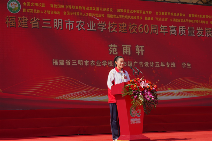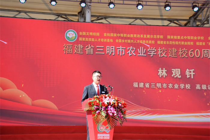 2025年11月15日,福建省三明农业学校迎来建校六十周年的辉煌时刻。以“耕读传承六十载,匠心筑梦向未来”为主题的建校六十周年高质量发展大会在学校运动场隆重举行。各级政府部门、兄弟院校、校企合作单位等向学校发来50余封贺信,每一封都以温暖的笔触,书写着对学校办学成就沉甸甸的肯定与对未来发展的殷切期许。